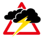 ※場内に、下のサインが掲示された場合は落雷の危険があります。速やかに安全な場所に避難して下さい。