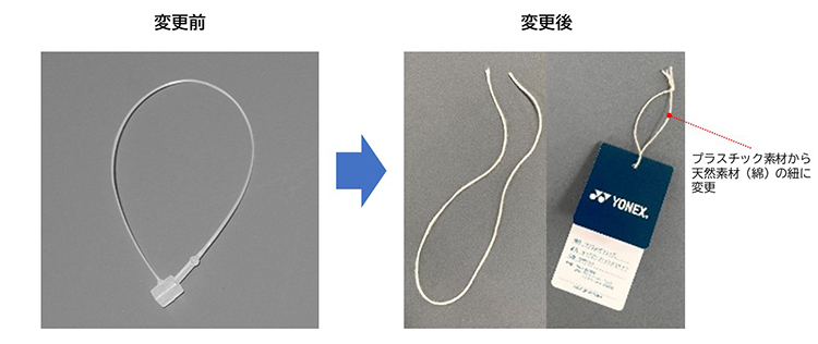 取り付け紐をプラスチック素材から天然素材の綿に変更