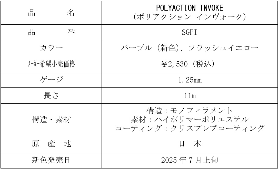 また、『ジオブレイク80S/80V』には、攻撃型ポリエステルストリング「ポリアクション インヴォーク・パープル(新色)」との組み合わせがお勧めです。柔らかいポリエステル素材の芯糸には、軽快に回転をかけられるコーティングが施してあり、高回転スピンをかけやすいというラケット性能をより引き出してくれます。
