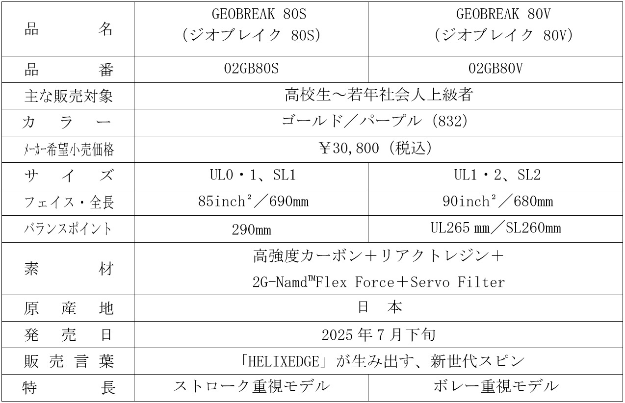 ヨネックス史上最高のスピン性能を誇り、上級者の皆様にご好評のソフトテニスラケット『ジオブレイク80S/80V』に、新デザイン“ゴールド/パープル”が加わり、2025年7月下旬に発売いたします。