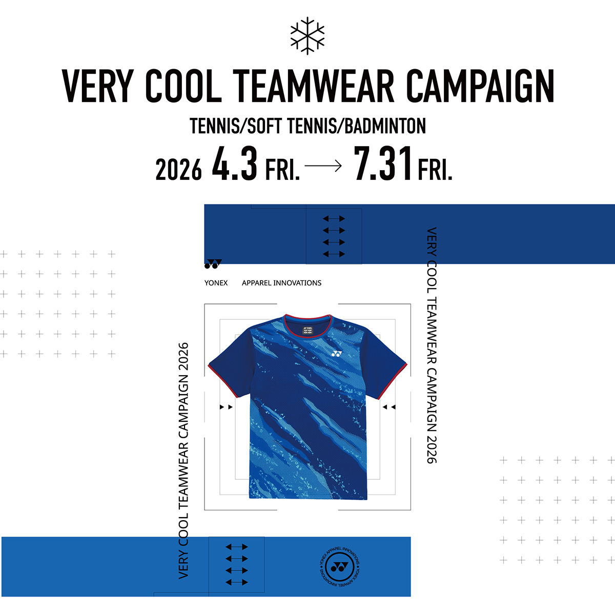 現在、キャンペーン参加店にて、対象商品からシャツを4枚以上ご購入いただいた方に、「VERY COOLチームウェアキャンペーン2026」を開催中。特典として、ご注文数に応じてヨネックスロゴ入りソックスをプレゼントいたします。