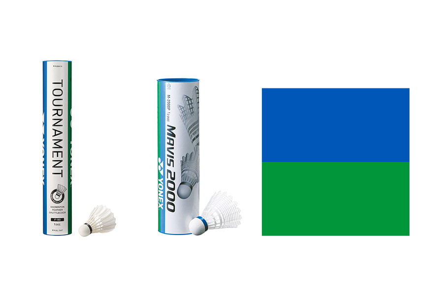 ヨネックスのシャトルコックに用いられているブルー&グリーンは、1973年にコーポレートカラーとして採用されたものです。ブルーは無限に広がる大空を、グリーンは揺るぐことのない大地をイメージしたカラーであり、革新への挑戦と、ものづくりに向き合う姿勢を表しています。