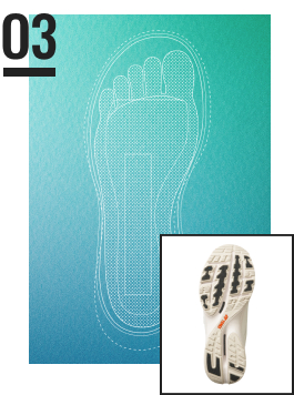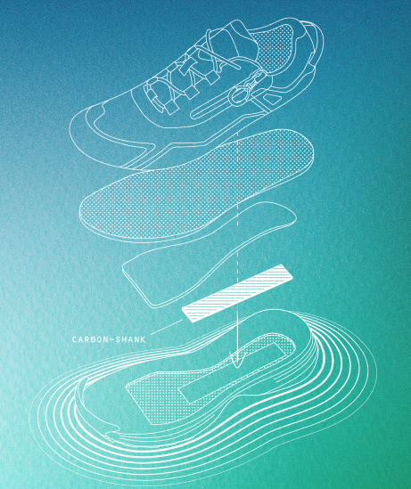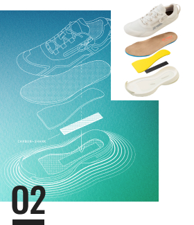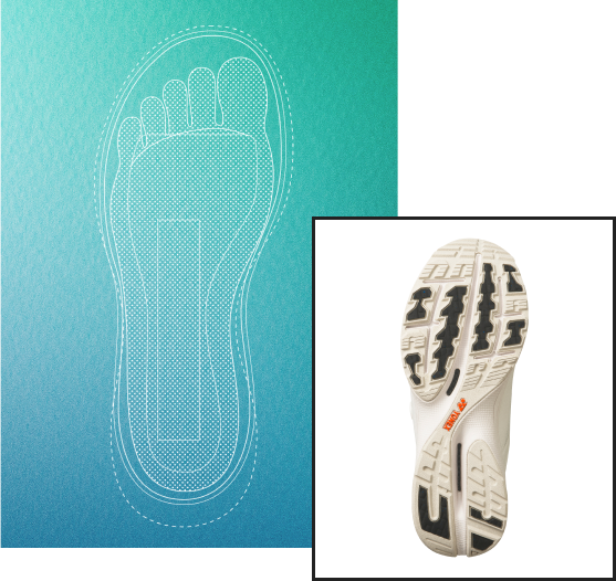 カーボン製のシャンク(芯材)がソールの変形を抑え、ブレのない安定した歩行をサポート。