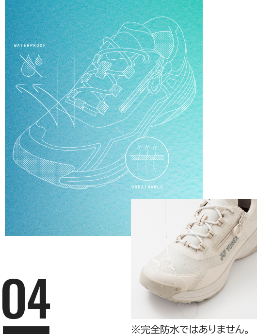 のフィルムを搭載。水を通さず、湿気は逃す。
