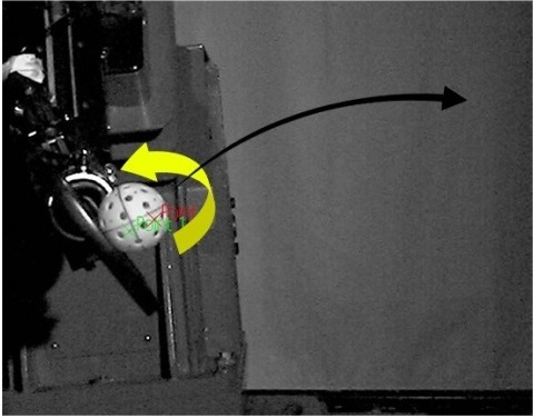 ※スウィングマシンによるバックスピンテスト(スライス/ディンク)打球を高速度カメラで撮影しスピン量を算出