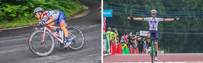 この大会には、CARBONEX HRを駆るKINAN CYCLING TEAMから6選手が出場。12Okmの周回コースで争われる大会初日に、最後の直線で他選手を振り切った山本元喜選手が幸先よく優勝を飾りました!「久々のレースでしたが、トレーニングを続けていたので、仕掛けどころまで脚を残していれば結果はついてくる自信はありましたし、HRの力も信用していました。今後も今日のようなレースを続けていきたいです。」と、山本選手は手にした勝利を振り返ってくれました。