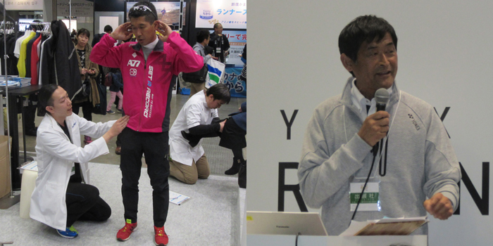 谷口浩美さんのトークショーでは、ご自身の様々なレース経験などを交えてシューズ選びの大切さなどをお話いただきます。ランニング膝リスク度チェックは、神奈川県立保健福祉大学の石井慎一郎准教授や理学療法士によって、一人一人を項目に沿って膝の健康度を測ります。是非この機会にお試しください。