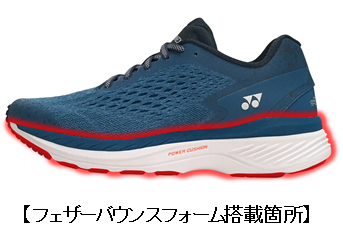 さらに、軽量素材・ハイパーフェザーライトをベースに反発性を約20%向上させた※3軽くて弾む素材「フェザーバウンスフォーム」をソール全面に搭載。柔らかい厚底ソールが着地衝撃を分散し、足を踏み込むことで、高い反発力が生まれ、前進のエネルギーに変換します。