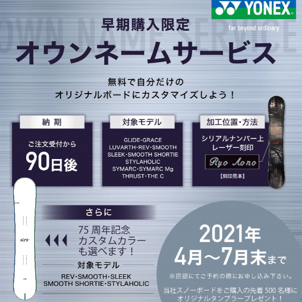 早期予約で、自分だけのオリジナルボードを手に入れよう! オウンネームサービス実施中
