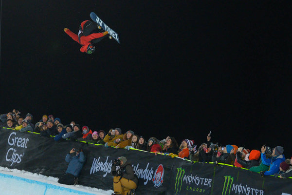 初出場となった今大会、徐々に降雪が激しくなるコンディションの中、3本目でFS540→BS900→FSダブルコーク1440→CAB1080→FSダブルコーク1260をメイク。横4回転に縦2回転を加える最高難度のトリック、FSダブルコーク1440を鮮やかに決めました。