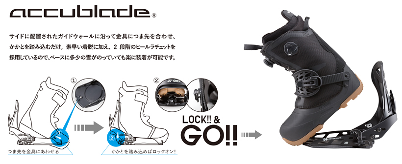 ■素早く簡単に着脱 リフトを降りて瞬時にスタートできるステップインシステム「accublade®(アキュブレイド)」
