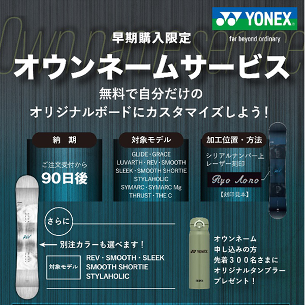早期予約で自分だけのオリジナルボードを手に入れよう! オウンネームサービス実施中