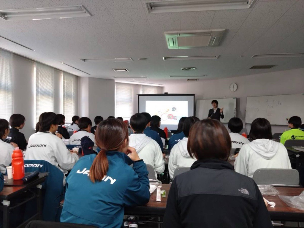 | 実施内容 | ◆現在心配な、または過去に心配だった身体部分や体調を医師に確認してもらったうえでケア方法の確認 ◆小中学生のスポーツ選手に必要な食事、補食の取り方についての講義とワーク ◆女性アスリートとしての注意点(食事、内科婦人科) ◆筋力、瞬発力、持久力の測定と自己理解 ◆理想的なスクワット姿勢と、母指球や足首を使ったフットワークトレーニング ◆世界戦を見据えたステップと低重心を意識した実践練習 ◆U17との強化試合 |