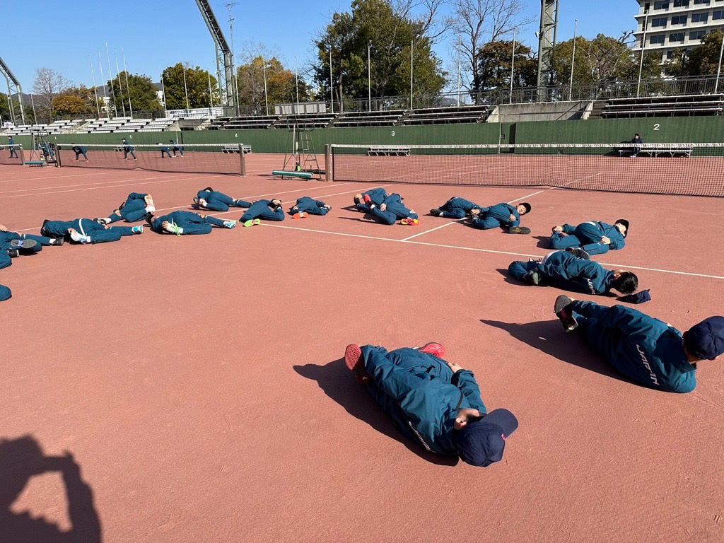 | 実施内容 | ・基本のウォーミングアップ、クーリングダウンの実施 ・体力測定を実施し、現在のチーム内での体力レベルの把握を実施 ・片足の荷重バランスを意識しながら上半身の動作を伴う協調性トレーニング ・上半身で自体重を支えながら行う体幹反射系のトレーニング ・U-14世代で伸ばしたい心肺持久力系のトレーニング ・ナショナルチームからストロークやボレー技術を伝達していただき、その後実践練習 ・自分の身体に対する矢印を向けてもらうため、講義形式でコンディショニングなどについて講義を行った |