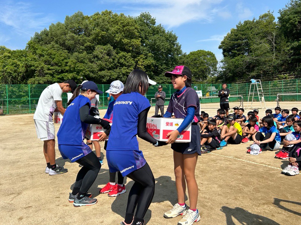| 成果 | ①世界選手権で戦えるモチベーションや技術/戦術の課題把握、ペアリングも確認することができた。 ②トレーニングでは、ぶれない体幹、クレーコートにおいて滑る、止まる、切り返すための下半身の使い方を中心に強化を行い、練習で実践し感覚を身に着けた。 ③メンタル講義では、心技体を高い次元まで引き上げるために必要な考え方や自己分析について学んだ。 ④ゲーム分析においては、予選会のゲームのデータから課題を明確にすることができ、意識しながら練習やゲームを行うことができた。 |