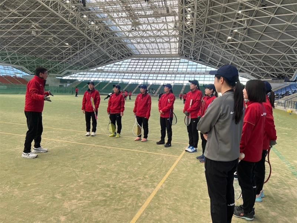 | 実施内容 | 練習にて:浅越さんによるシングルに対するストローク、フットワーク練習、ゲーム形式、体力測定、所属でも取り組めるトレーニングのレクチャー(ウエイトトレーニングとモビリティ、スタビリティのチェックと向上のためのメニュー中心) 講義にて:食事について(全体講義、日々の食事のあり方) ドーピングについて(陽性になったどういうことが待ち受けているか、日々気をつけること、ピルの服用について) フィジカル強化に当たって日々の取り組み方法について(ウエイトトレーニング、フィジカル強化の必要性) メンタルについて(モチベーション高く、自らの可能性に挑戦するための方法) |