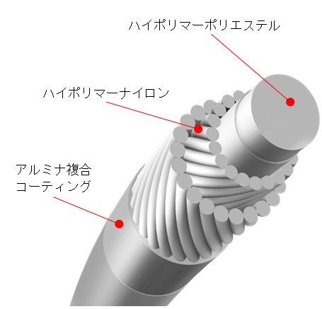芯糸にはハイポリマーポリエステルを使用し、さらに、金属よりも硬いアルミナを複合したコーティングにより打ち応えが向上。爆発的な打球音が力強い印象を与えます。