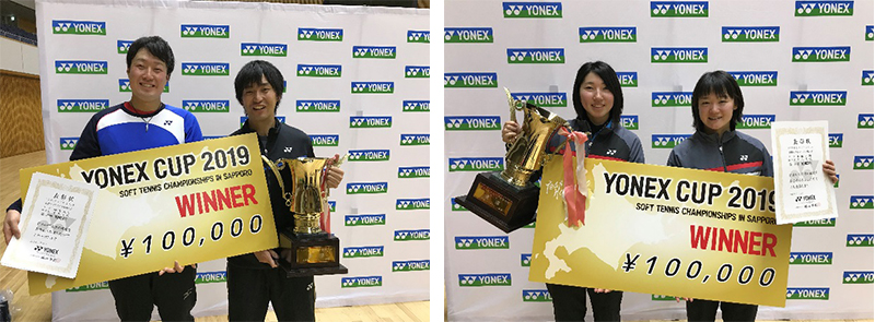 世界の強豪が集結した『YONEX CUP 2019 国際ソフトテニス札幌大会』(北海道・北海道立総合体育センター北海きたえーる)が24日に開催され、男子では中本圭哉・鈴木琢巳ペア(福井県庁)が優勝、女子は高橋乃綾・半谷美咲ペア(どんぐり北広島)が3連覇を達成しました。