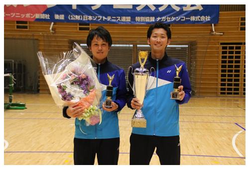 4月6日と7日に『第64回全日本女子選抜ソフトテニス大会』『第3回全日本男子選抜ソフトテニス大会』が駒沢オリンピック公園総合運動場内屋内球技場で行われ、林田和樹・柴田章平ペア(ヨネックス)が優勝を飾りました。東京インドア、全日本インドアに続き、3つ目のビッグタイトル獲得です。