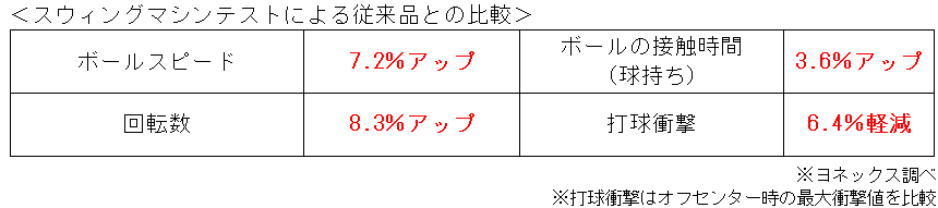 ※2 スウィングマシンテストによる従来品との比較、ヨネックス調べ