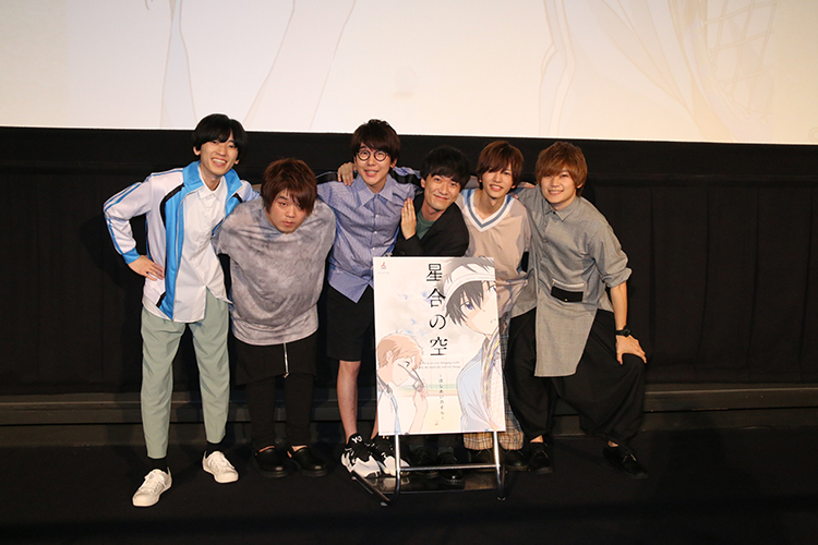 上映後には、主人公「桂木眞己」役の花江夏樹さん、「新城柊真」役の畠中祐さんを始めとする、計6名の人気声優陣によるトークショーも開催し、『星合の空』に対する熱い想いを語りました。