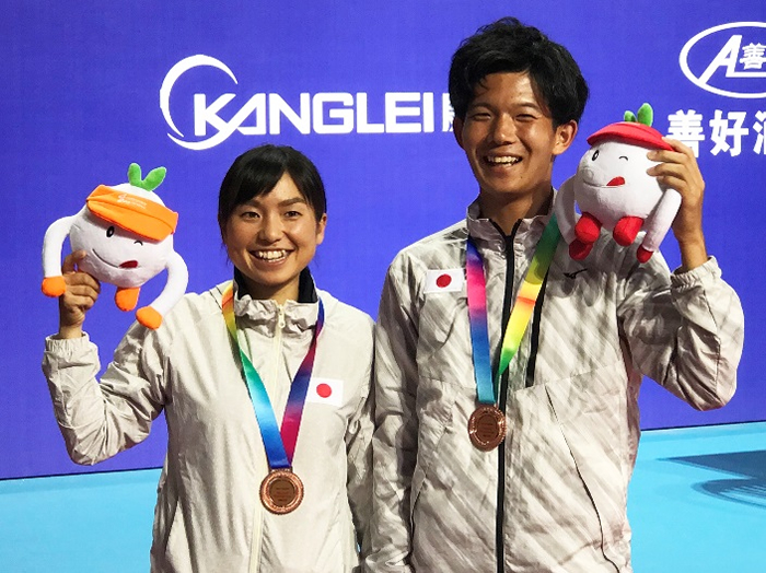 さらに、ミックスダブルスでは内本・黒木ペアが銅メダルを獲得。強豪ペアに打ち勝ち、有言実行で堂々のメダル獲得です。