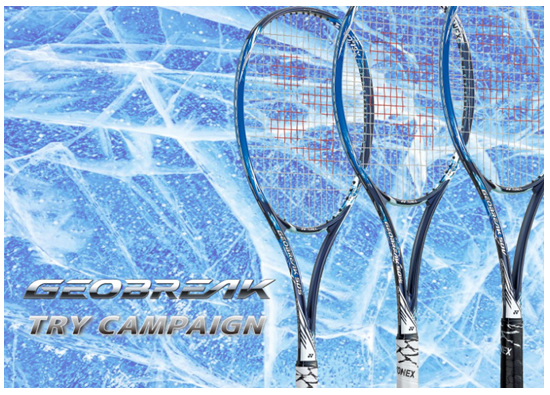 大好評のソフトテニスラケットGEOBREAKシリーズからボールの飛びと柔らかさを追求した中級者向けソフトテニスラケットGEOBREAK50シリーズが発売決定!これを記念して、発売前にお試しいただける「GEOBREAK50トライキャンペーン」を開催いたします。