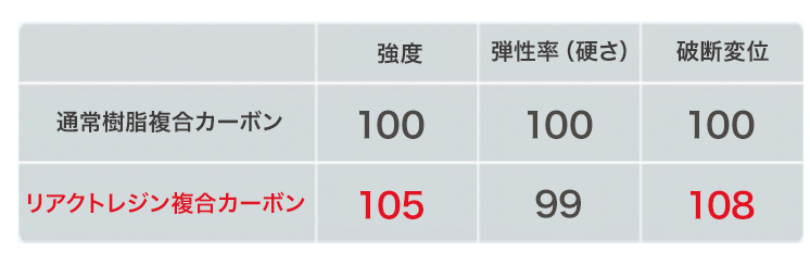 高強度で粘り強い新樹脂「リアクトレジン」を複合したカーボンをラケット全体に使用することで、打球感の柔らかさを保ちながら軽量化し、高速スウィングを可能にします。