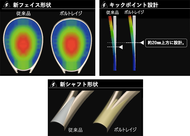 剣先部はねじれを抑える形状にすることで剛性を高め、キックポイントを上方へ約20mm移動。打球時のレスポンスを向上させ、素早いキックバックを生むことで、弾き性能を高めます。