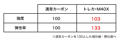 ※3 トレカ®M40X は、東レ㈱が開発した、相反する「高強度と高弾性率」の両立を追求した次世代炭素繊維です。