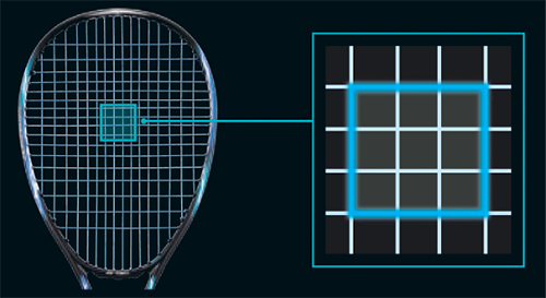 縦ストリング部分のグロメットにはリブを付け、可動域を抑制して反発力を高める新グロメット構造「RAYBURST SYSTEM(レイバーストシステム)」(特許出願中)を搭載。これらの技術により、ボールスピードと爽快な打球音を実現しました。
