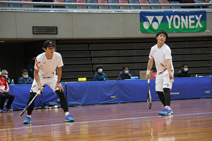 男子ナショナル同士の大将戦に勝ち、優勝を決めた上岡俊介・広岡宙ペア