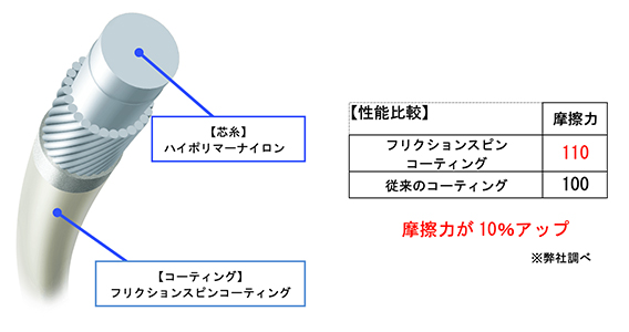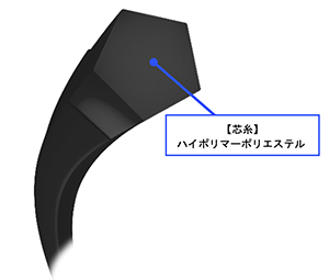 | 素材 | 芯糸:縦 ハイポリマーポリエステル、横 ハイポリマーナイロン 側糸:横 ハイポリマーナイロン・ワインディング加工 |