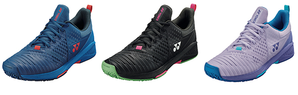 本製品は、オールコート用とクレー・砂入り人工芝コート用に加え、4Eワイドモデルも展開。幅広いラインナップで、より多くのプレーヤーに快適な履き心地を提供し、素早いフットワークを実現するテニスシューズです。