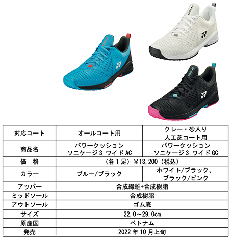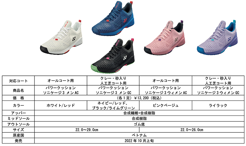 ヨネックスは、新衝撃吸収反発素材「パワークッション®プラス」を搭載し、柔らかで快適な履き心地と、素早いフットワークを可能にする反発性と安定性が特徴のテニスシューズ「POWER CUSHION SONICAGE 3」(パワークッション ソニケージ 3)を2022年10月上旬より発売いたします。