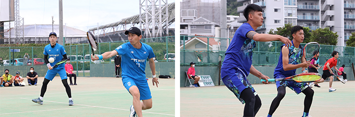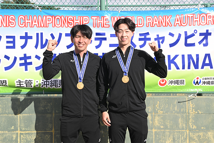 男子ダブルスでは、チャイニーズタイペイのエースダブルスで現世界王者のユー・カイウェン/リン・ウエイジェペアが会場の注目を集め、世界最高と謳われる「ダブルフォワード」を武器に決勝まで勝ち上がり、決勝で相対するのはこちらも日本最高のダブルフォワード、長江/上松ペア(NTT西日本)と対戦。激しい攻撃的ショットの応酬、時に隙をつくロブやショートクロスのショットなどを織り交ぜ、息を飲む展開が続きますが、最後は地の利も活かした長江/上松ペアが勝利を掴みました。