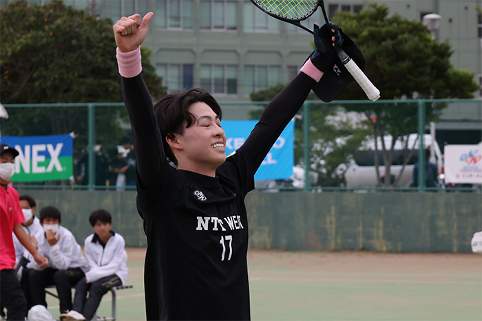 大会はシングルスから開幕し、男子はNTT西日本がベスト4を独占。決勝では2022全日本シングルスと同カードの上松俊貴、内田理久が顔を合わせました。ゲーム開始直後から内田選手が主導権を握る展開が続きましたが、追い込まれても攻める姿勢を貫いた上松選手が徐々にギア上げ、ファイナルに突入。最後まで攻め続けた上松選手が初代王者に輝きました。