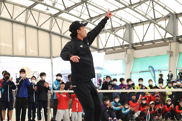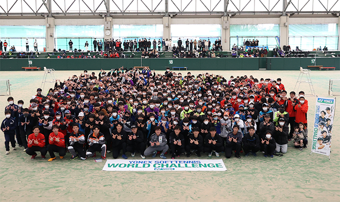 3月4日(土)に山口県宇部市の宇部市中央公園テニスコートにて、ソフトテニスのファンイベント「ヨネックスソフトテニスワールドチャレンジ in 宇部」を開催しました。地元の小学生、中学生を中心に会場には総勢約900名ものファンの方々にお集まりいただきました。
