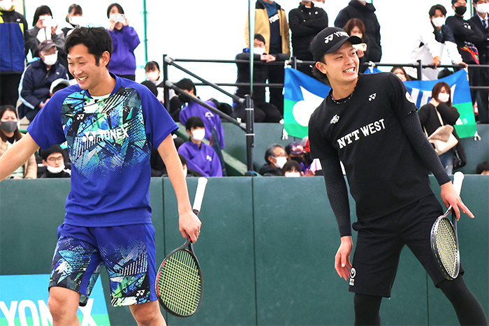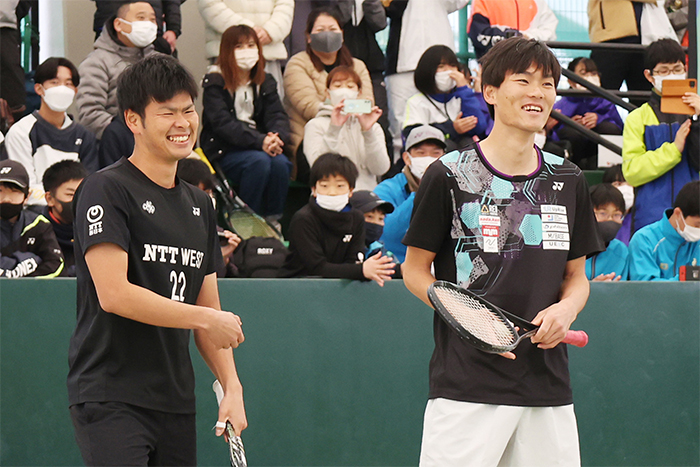 イベントの目玉であるエキシビジョンマッチでは、大学時代インカレを獲った本倉(NTT西日本)・丸山ペアや林田・林(ヨネックス/NTT西日本)ペアなど高校の先輩後輩ペアなど、このイベントでしか見られないであろうペアリングが実現。その模様はYouTubeでLive配信されました。