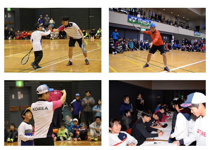 『ヨネックスソフトテニスワールドチャレンジ』を、岐阜県揖斐郡、宮城県塩釜市で開催しました。合計約1,600名もの子どもたちが、 韓国、日本のそれぞれNo.1選手のプレーに刺激を受けて、さらにMCはU17女子コーチの篠原和隆さんと人気YouTuberのあゆタロウさんが務めたことで、会場が熱気に包まれました。