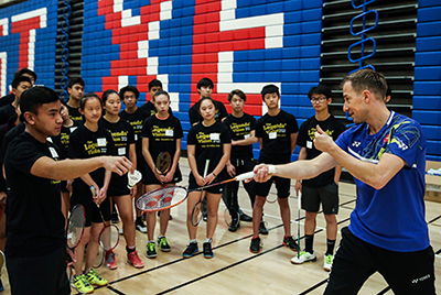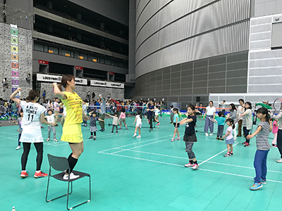 ヨネックスは「バドミントン競技の普及発展」の観点で長年にわたり、国内各地、また世界中で講習会を行っています。学校の部活動や地域のクラブ等に当社スタッフ(現役選手や元選手)が訪問し、技術指導やデモンストレーション、参加者とのラリーなどバドミントンの楽しさを感じていただく機会を設けています。