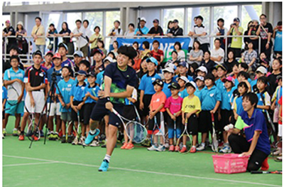 ソフトテニスは日本の部活動で人気の高いスポーツです。ヨネックスでは学校の部活動や地域のクラブ等に当社スタッフ(現役選手や元選手)が訪問し、技術指導やデモンストレーションなど、ソフトテニスの楽しさ、奥深さを味わってもらえる講習会を行っています。