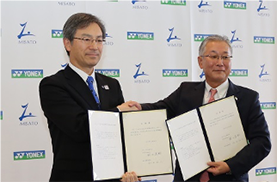 バドミントンを通じた地域活性化を積極的に図っている秋田県美郷町とヨネックスは、教育、文化、健康増進、まちづくり等の分野で連携を図り、互いに持つ資源を活用して、スポーツの振興や町民の皆様の健康増進地域社会の発展と人財育成に寄与することを目的に包括連携協定を結んでいます。