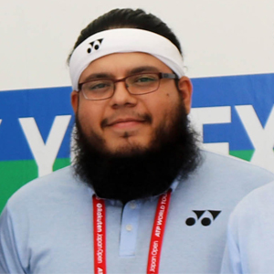ヨネックスストリンギングチーム(上)、今大会初参加の ディマス・メンデス(プエルトリコ)(左下)とエドウィン・グルジス(右下)(右)