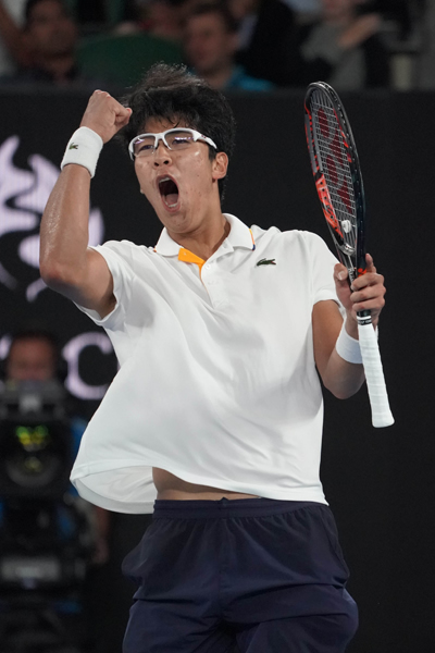 全豪オープン2018(1月15日~28日/オーストラリア・メルボルン)の男子シングルス準々決勝で、チョン・ヒョン(韓国)がテニス・サングレン(アメリカ)をストレートで破り、グランドスラム初の準決勝進出を決めました。21歳での全豪オープンベスト4は、2010年のマリン・チリッチ(クロアチア)以来となります。冷静な試合展開と、強靭な足腰、そしてVCORE Duel Gによる安定感のあるストロークで勝利を収めました。チョン・ヒョンは試合後「40-0でのマッチポイントを逃してからは、何でもやろう、コートに返そうととにかく試合に集中した」とコメント。次戦はロジャー・フェデラー(スイス)とトマーシュ・ベルディハ(チェコ)の勝者と対戦します。