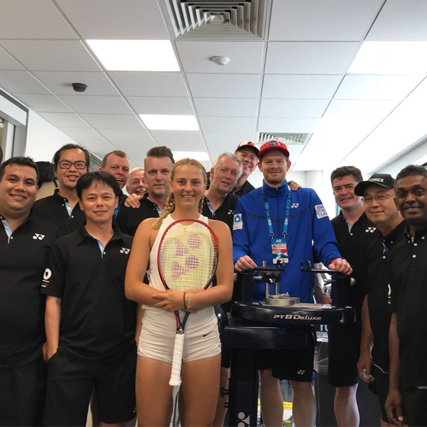 女子ダブルスでは、ワン・ヤファン(中国)組が日比野菜緒組とのヨネックス対決を制し優勝。同大会では、当社のテニスボールが公式球として使用され、ヨネックスストリンギングチームが選手のプレーをサポートしました。