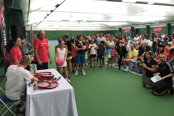 8月5日、カナダ・トロントのメイフェアークラブにてVCORE発売イベントが行われ、同クラブメンバーやジュニアなど合計200名が参加しました。地元期待の星デニス・シャポバロフが登場すると、会場の盛り上がりは最高潮に!ジュニアに激励の言葉をかけ、ワンポイントレッスン、サイン会で多くのファンと交流を図りました。