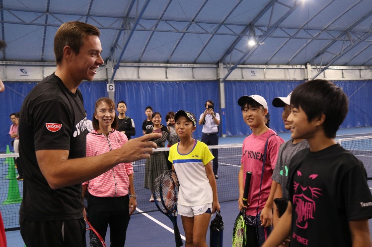 バインコーチ指導の元、トップジュニア4名が大坂も実際に行っている練習メニューを中心に実演。日本代表として活躍された辻野隆三氏と吉田友佳氏が解説と球出しを行い、日本の指導者に世界トップのテニス理論を伝道しました。