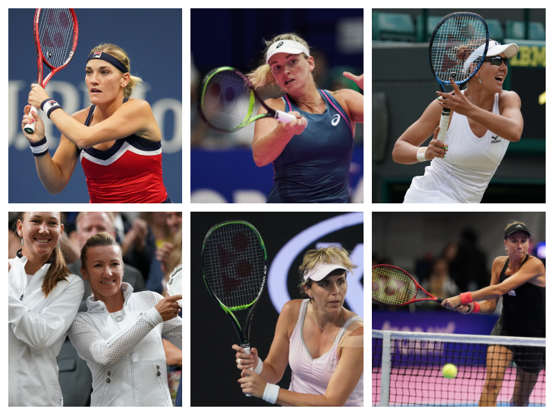 上段左から、ティメア・バボシュ、ココ・バンダウェイ、ニコール・メリチャー。 下段左から、クベタ・ペシュケ(右)、マリア・ホセ・マルティネス・サンチェス、アンドレア・フラバコワ