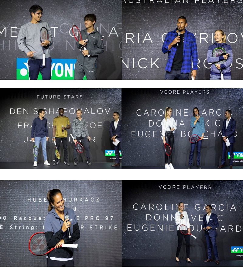 さらに、3月上旬発売となるVCOREの新デザイン、ギャラクシーブラックが初お披露目となりました。ステージの上からラケットが登場する演出に参加者は熱狂。今季より同ラケットを使用するケルバーは、「素晴らしいラケットです。ヨネックスのラケットは子供の頃から愛用しています。ヨネックスファミリーの一員で大変光栄です」とコメントしました。 全豪オープンでのチームヨネックスの活躍に期待してください!